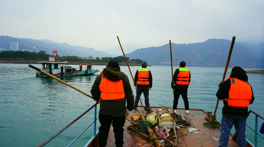 2012年向家坝水电站下闸蓄水至今,清漂队已守护金沙江超过10年。队员们说,起初每年能打捞约1000吨垃圾,近年来随着河长制的全面实施,长江大保护的意识深入人心,每年打捞的垃圾量已减少到500吨左右。