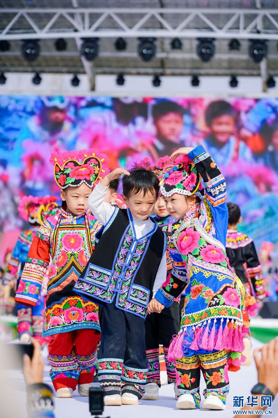 2月23日,云南省楚雄彝族自治州永仁县举办“新年游·新年俗”——非遗(彝绣)服装服饰文旅体验活动,来自全国上百位儿童齐聚永仁体验彝族赛装(彝绣)文化,展示秀场风采。