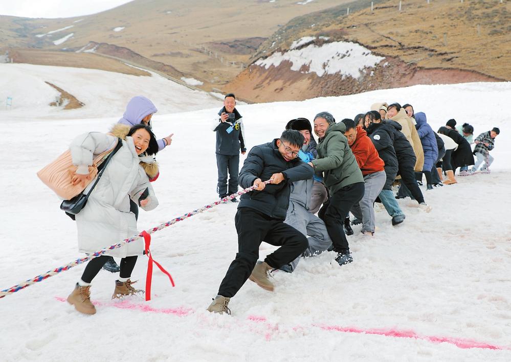 会泽大海草山雪地拔河