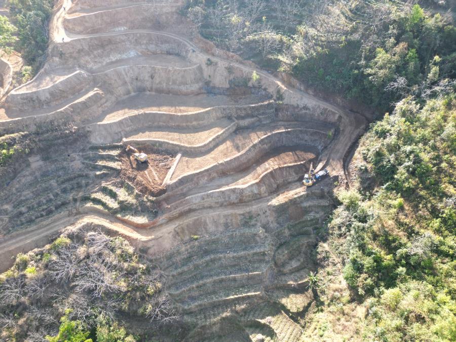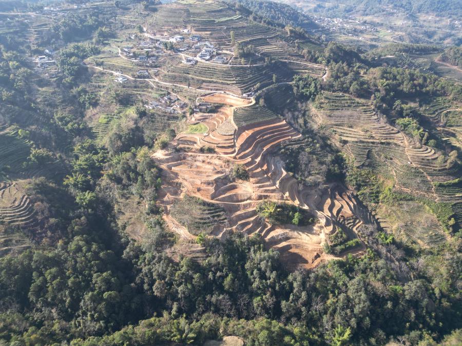 航拍昌宁县翁堵镇明山村抄纸龙潭片区高标准农田项目建设现场(3月5日摄)。郭康 供图