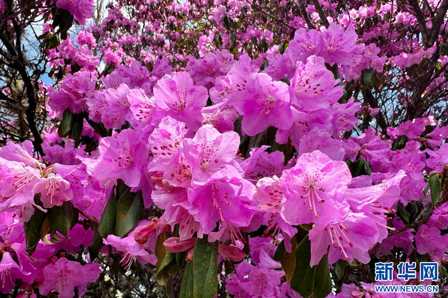 杜鹃花绽放于高山之上(4月8日摄)。新华网发(剑川县融媒体中心供图)