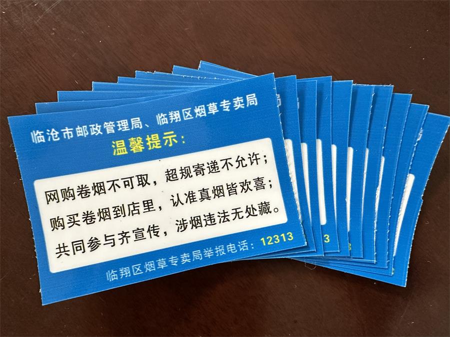 随着网购普及,涉烟不法分子将违法途径转向了快递环节。对此,临翔区烟草专卖局当机立断联合顺丰、圆通等物流公司,编写普法“顺口溜”并制作成贴纸,同快递包裹一同“送货上门”,向公众宣传涉烟违法行为的危害和法律责任。自三月份以来,已成功印发宣传贴纸5000余份。