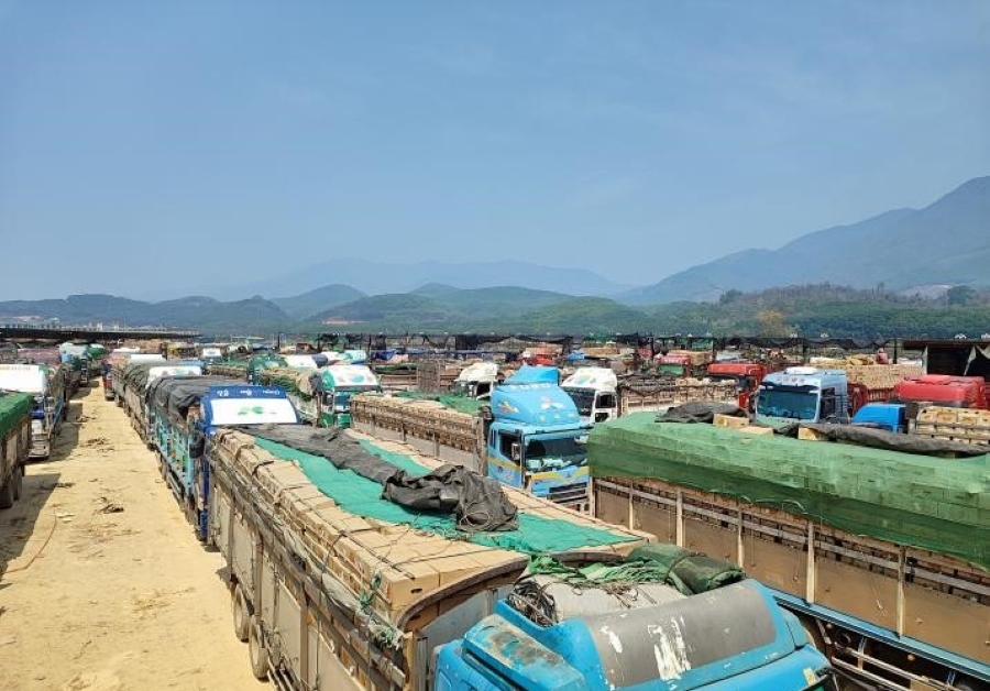打洛口岸装满缅甸甜瓜货车的交易市场(4月23日摄)。周丽 摄