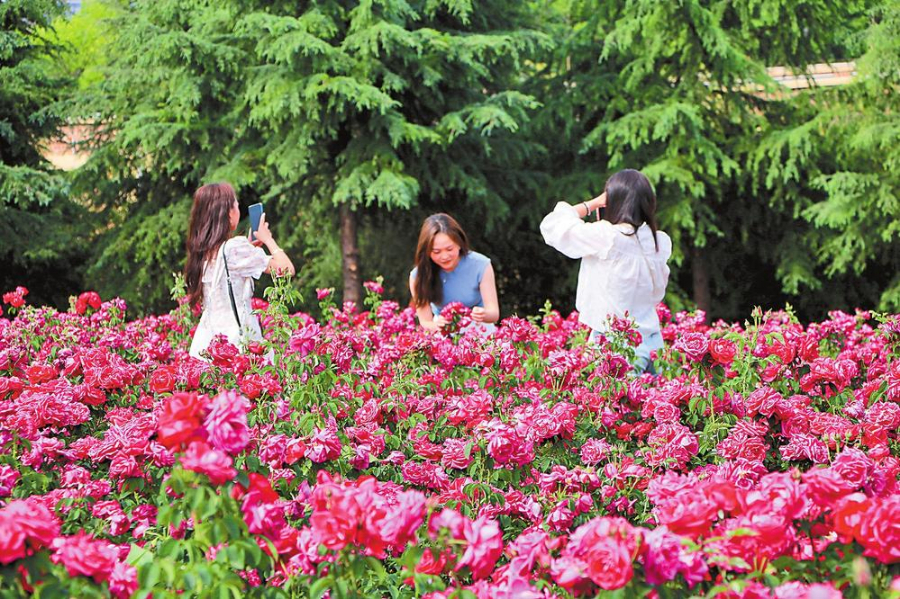 每年4月,云南大学呈贡校区的玫瑰如期赴约,不少师生、游客穿梭于30余亩玫瑰花田内拍照打卡。据介绍,云南大学种植的玫瑰以可食用的滇红玫瑰和大马士革玫瑰为主,工作人员会在盛花期采摘玫瑰花瓣制作成各种玫瑰菜品,供师生食用。(见习记者 舒倩 摄)