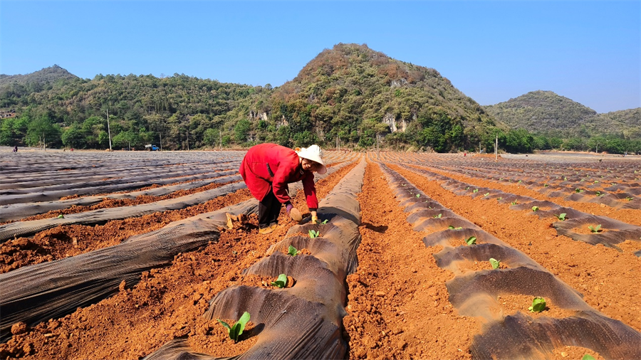 种植户对烟苗进行破膜掏苗作业(5月2日摄)。吴锦慧 摄