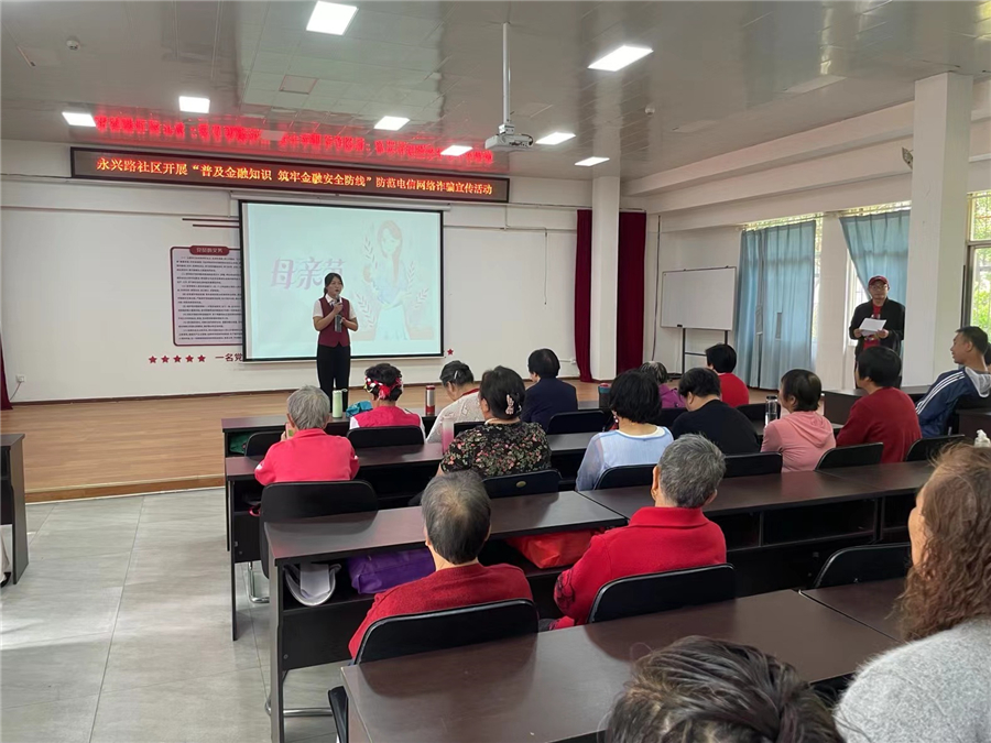 当天,兴业银行昆明西山支行特别邀请许多“母亲”客户齐聚永兴路社区活动中心,理财经理现场开展“财富管理”系列消保防诈宣教讲座,用通俗易懂的语言,讲解金融诈骗的常见套路和手法,让大家认识到防范金融风险的重要性。(完)