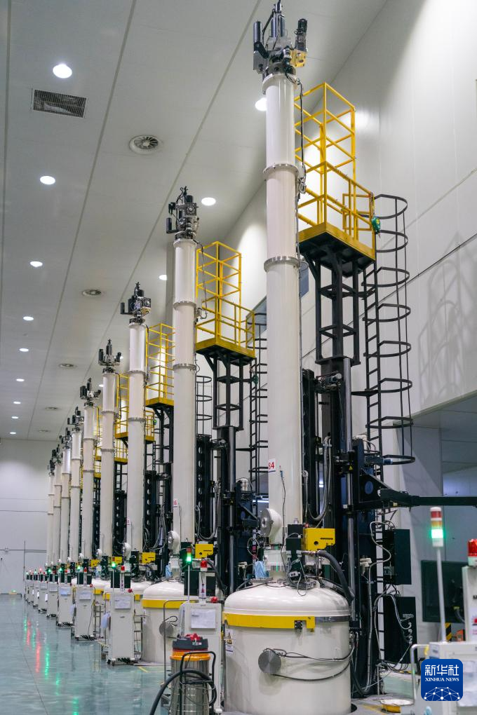 这是5月15日在曲靖隆基硅材料有限公司拉晶车间内拍摄的拉晶炉。