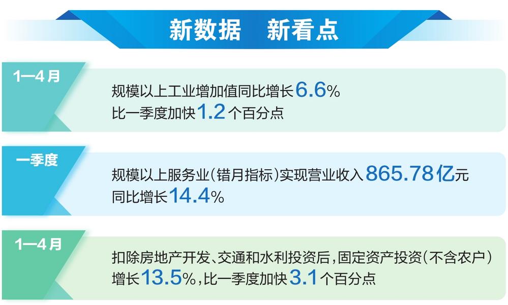 1—4月,全省规模以上工业增加值同比增长6.6%,比一季度加快1.2个百分点。其中,4月份增长8.6%,比3月份加快3.5个百分点。