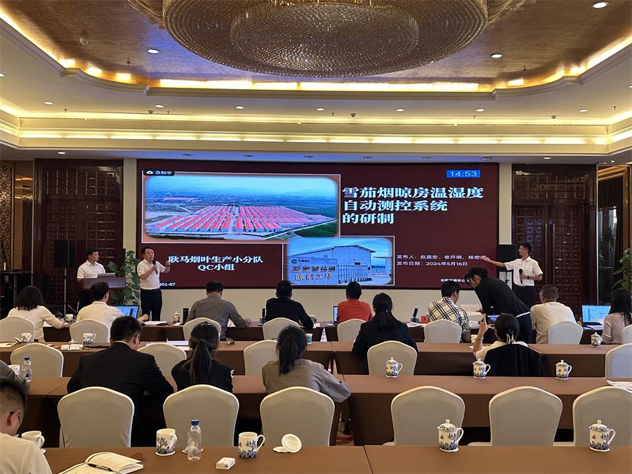 “耿马烟叶生产小分队”QC小组在云南省烟草专卖局(公司)系统第十届优秀改善创新成果发布会上发布QC课题(5月16日摄)。者开明 摄