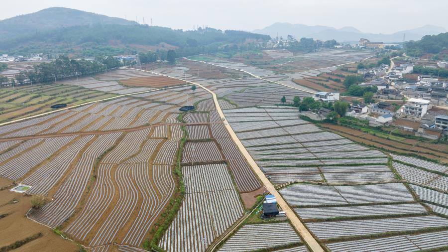 航拍西邑乡下坝村烟田(5月9日摄)。杨荣辉 摄
