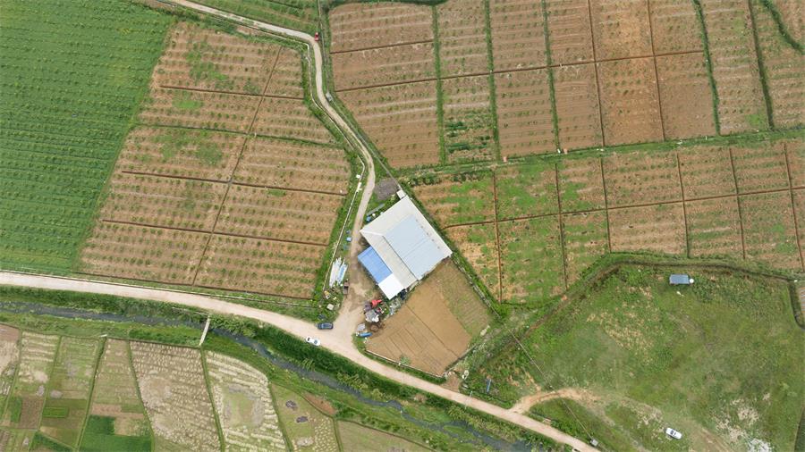 航拍隆阳区欣叶烤烟专业合作社农机改造点(5月9日摄)。杨荣辉 摄
