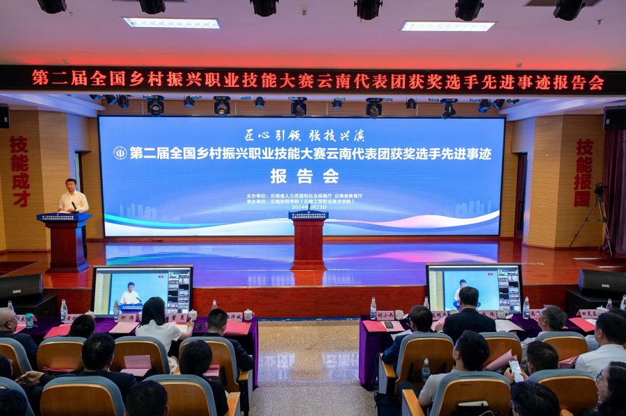近日,第二届全国乡村振兴职业技能大赛云南代表团获奖选手先进事迹报告会在云南技师学院(云南工贸职业技术学院)举行,云南省有关负责人和获奖选手所在院校师生代表在现场聆听报告,全省各院校组织师生线上收听收看。