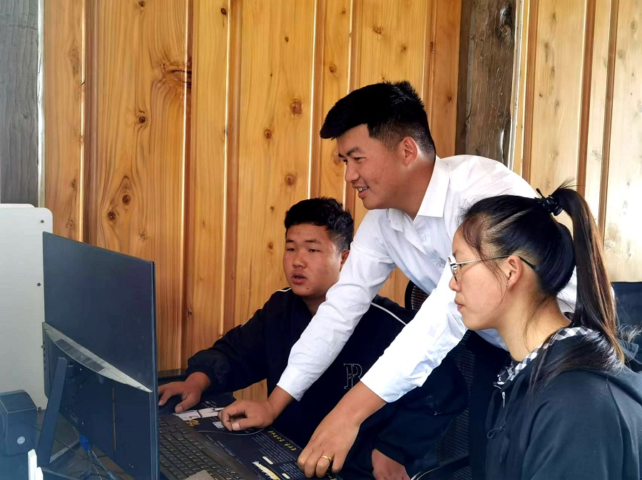 曹大成(中)正在教学员如何管理直播后台数据(3月13日摄)。徐静 摄
