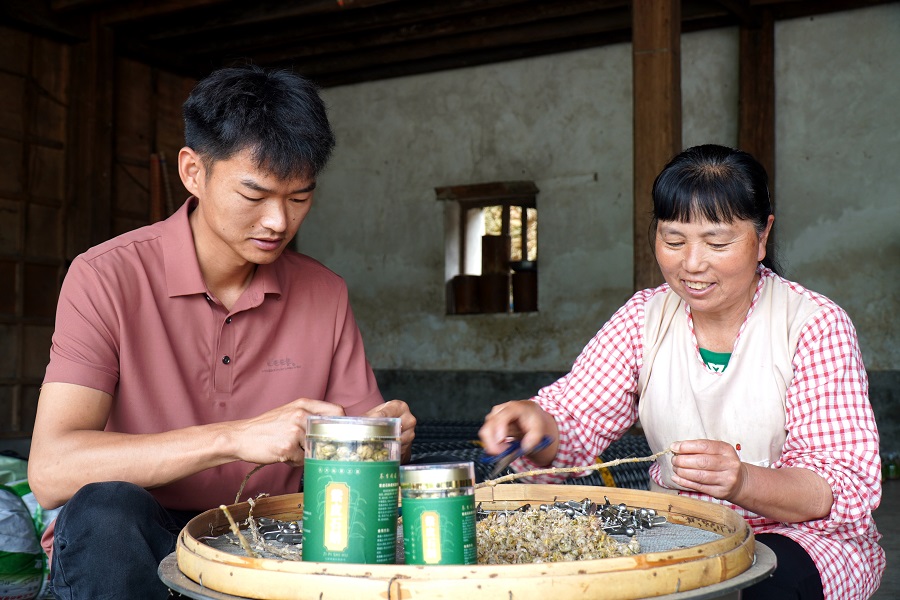 28岁的庄毕相2017年大学毕业后,选择回乡跟随父亲打理家里的10多亩石斛,经营龙陵县象达庄毕相石斛加工厂,收购石斛鲜条发放给村民加工枫斗,2023年向当地村民收购鲜条100多吨。现在,庄毕相每年带动500多名村民加工枫斗,每年支付给村民加工费200多万元。除了枫斗加工,厂里长期用工5人,种植、管理、采收时节每天用工10多人,高峰期每天用工50多人,每年支付工人工资50多万元。