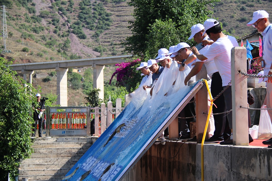 6月5日,黄登・大华桥电厂在大华桥库区玉龙大桥码头开展2024年澜沧江土著鱼类人工增殖放流活动。本次放流澜沧江珍稀土著鱼类鱼苗共计8万尾,其中,光唇裂腹鱼4万尾、灰裂腹鱼2万尾、澜沧裂腹鱼2万尾,标记鱼数量8千尾,规格为3至20厘米。