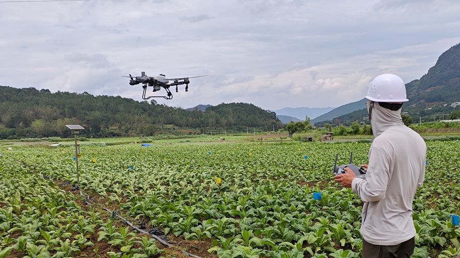 当前,正值烤烟病虫害防治的重要时期,在云南省临沧市永德县德党镇,无人机飞防作业已大面积推广。