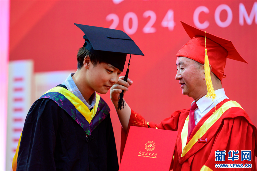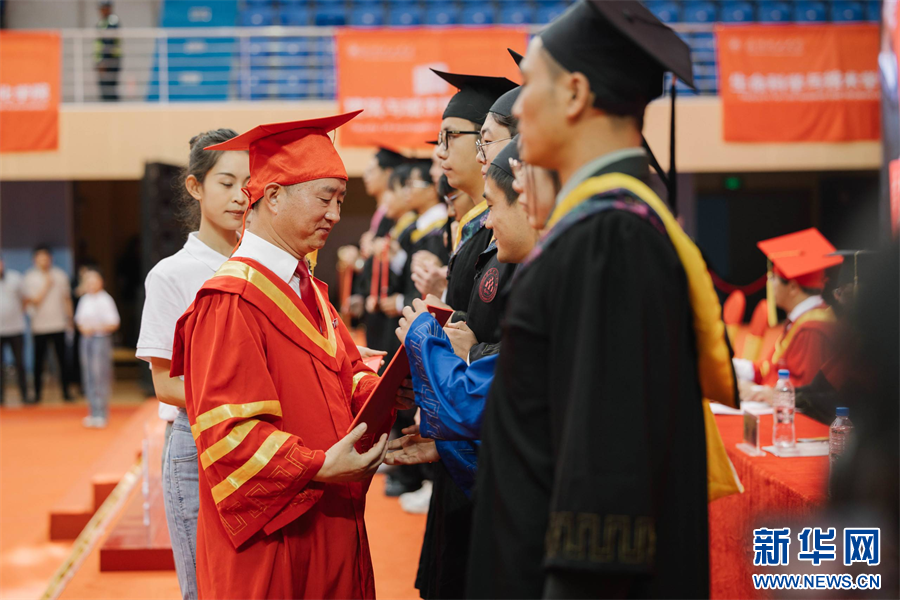 唐家华为毕业生拨穗(6月20日摄)。新华网发(昆明理工大学 供图)
