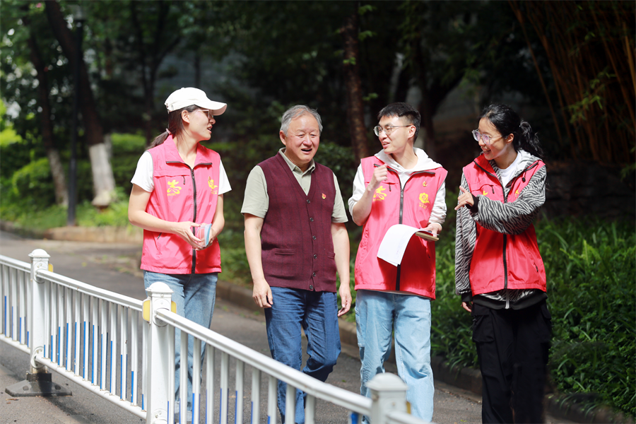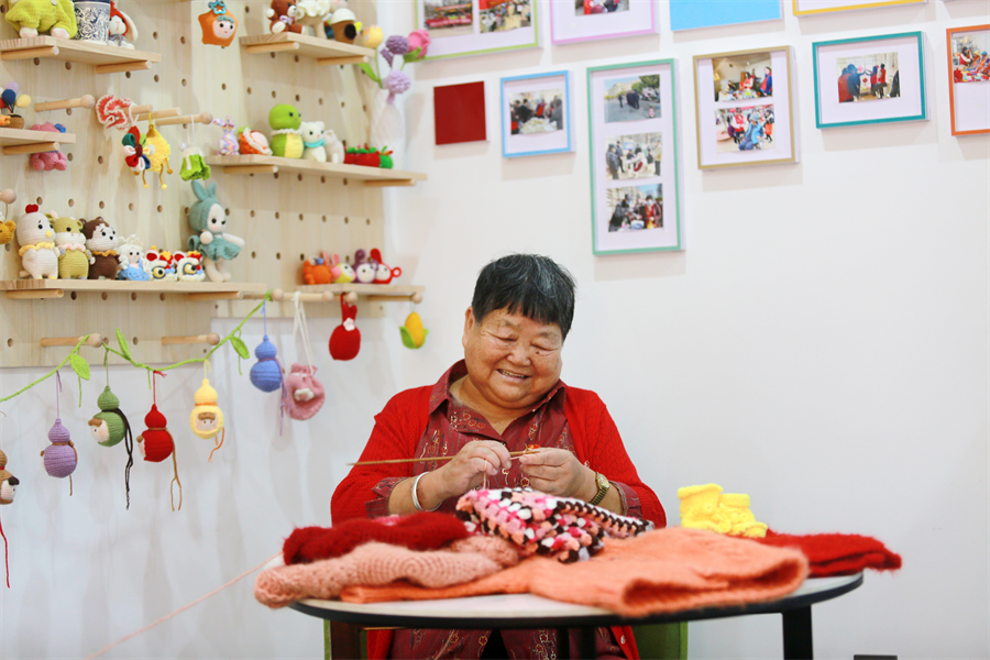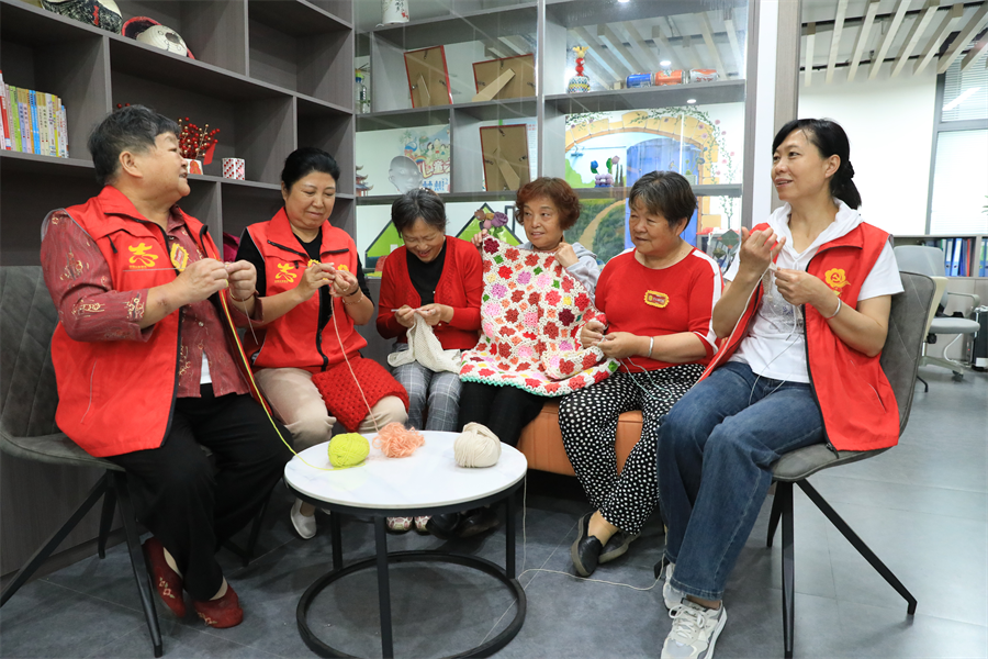 社区楼栋里,她们编织着一份祝福,笑得那么甜