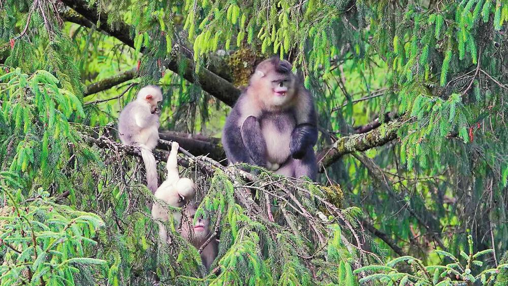 白马雪山保护区响古箐展示猴群。通讯员 张田 摄