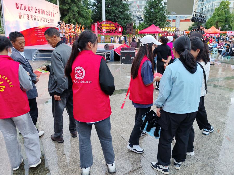 演出前,“云小普”暨法律服务分中心志愿者向前来观看演出的群众宣传发放了《中华人民共和国宪法》《中华人民共和国民法典》《中华人民共和国家庭教育促进法》《怒江傈僳族自治州文明行为促进条例》等法律法规知识手册,重点结合身边典型案例,就防范电信网络诈骗、老年人权益保护、妇女儿童权益保护、移风易俗等热点话题进行了讲解,耐心细致地解答群众提出的法律问题。
