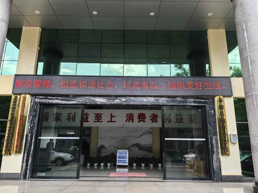 永德县烟草专卖局(分公司)滚动播放禁毒标语(6月5日摄)。杨祖华 摄