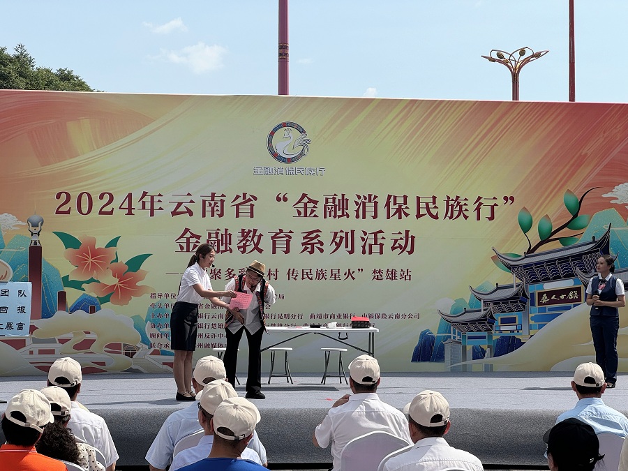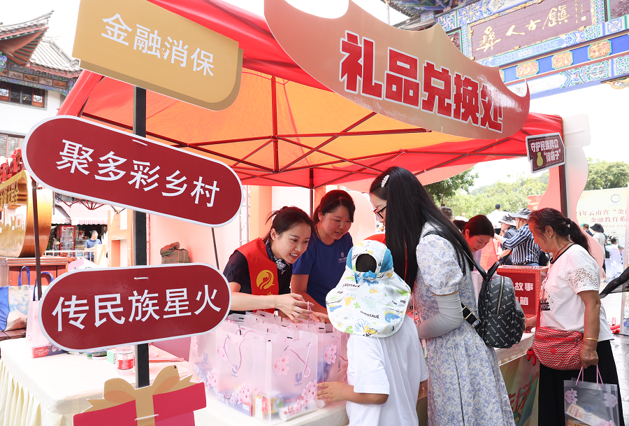 7月27日,在楚雄彝族自治州楚雄市彝人古镇的“金融消保知识缤纷集市”活动现场,一场将花灯、小剧场与金融教育相结合的,具有云南特色的反诈骗表演吸引了众多市民和游客的目光。活动现场还设置了趣味游戏、知识科普区打卡等活动,以寓教于乐、融学于趣的方式向市民游客普及各类金融知识。