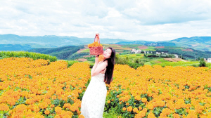 初秋时节,东川区红土地景区千亩万寿菊进入盛花期,大片金黄美得令人心醉。