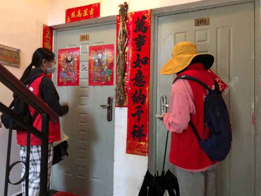志愿者上门进行政策宣传(7月25日摄)。陈晓云 摄