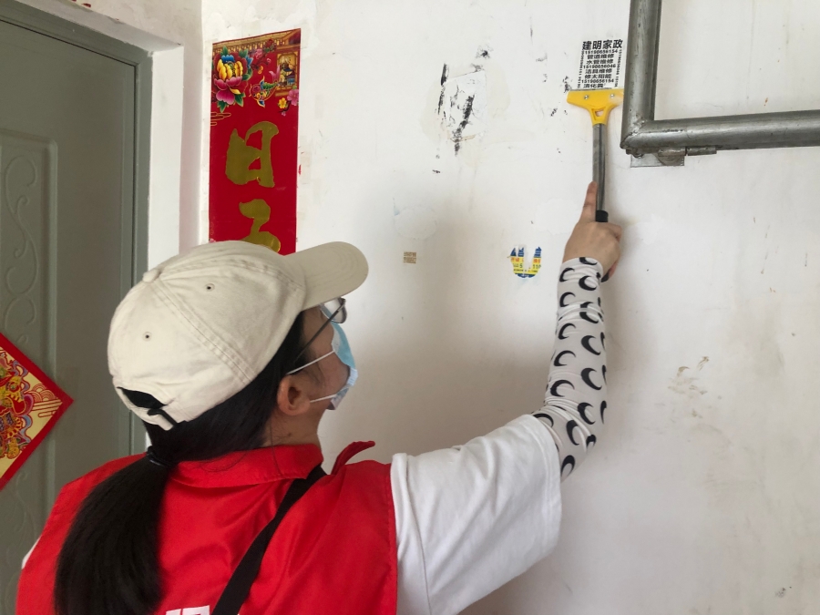 志愿者帮助清理社区垃圾(8月1日摄)。黎晶 摄