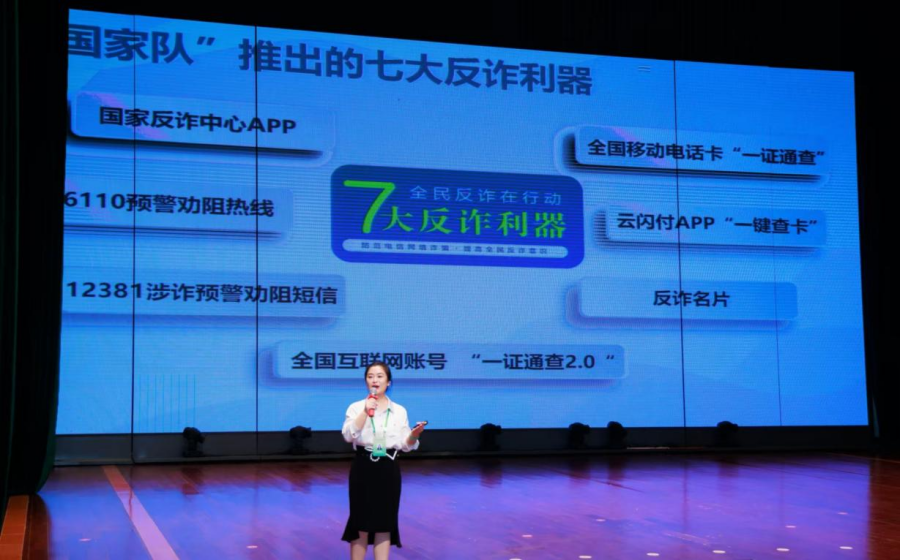 在“金融消保一堂课”环节,平安人寿云南分公司的“云南金融知识讲师团”讲师寇嘉蕾作了题为“全民反诈,天下无诈”的反诈培训。寇嘉蕾与学生们现场互动,通过真实案例,深入浅出地揭示了电信网络诈骗的多种手段,向学生们传授了防范电信网络诈骗的技巧,强调了理性应对诱惑、拒绝非法利益的重要性,并介绍了国家推出的七大反诈利器。