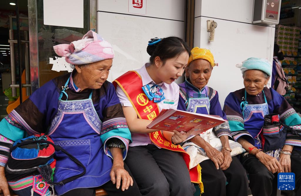 9月8日,在云南省师宗县五龙壮族乡集市,农行云南曲靖分行员工在为群众讲解金融知识。