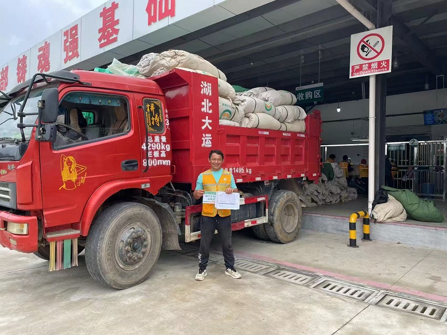 “交售代表”黄光文进站交售(9月4日摄)。杨洪美 摄