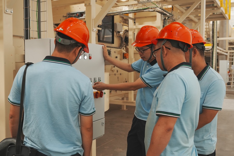 8月15日,技改工地上举行了设备联调联试仪式。“设备巡查完毕,无异常情况,可以启动!”在技改攻坚人员的注视下,设备安装调试组员工在打叶段工位机处操作鼠标,点击启动按钮,随后机器轰鸣,高速运转。设备安装调试组的其他员工即刻前往打叶设备前、中、后段,根据启动顺序和运行状态,认真检查跟踪。