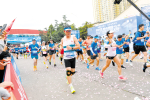 上午8点,伴随着发令枪响,1.5万名跑者冲出起跑线,途经三市街商圈、云坊商业城、万达双塔、昆明飞虎队纪念馆、盘龙江、得胜桥、金马碧鸡坊、近日楼、东西寺塔、海洪湿地、五甲塘湿地等,一直抵达位于终点的滇池会展中心。而参加欢乐跑项目的5000名选手从拓东体育场出发后,途经东风东路、北京路、塘子巷、金碧路、东寺街、环城南路,最终到达西昌路。一路上,选手们呼吸着昆明凉爽清新的空气,将赛道沿途的美景尽收眼底,场外加油呐喊声不断,让本届赛事不仅是一场马拉松的盛宴,更是一次深度体验昆明城市文化的旅行。