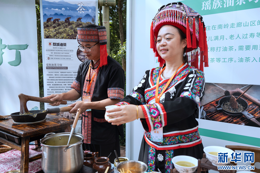 “中国传统制茶技艺及其相关习俗”展区,瑶族油茶习俗展台(9月25日摄)。新华网发 刘起摄