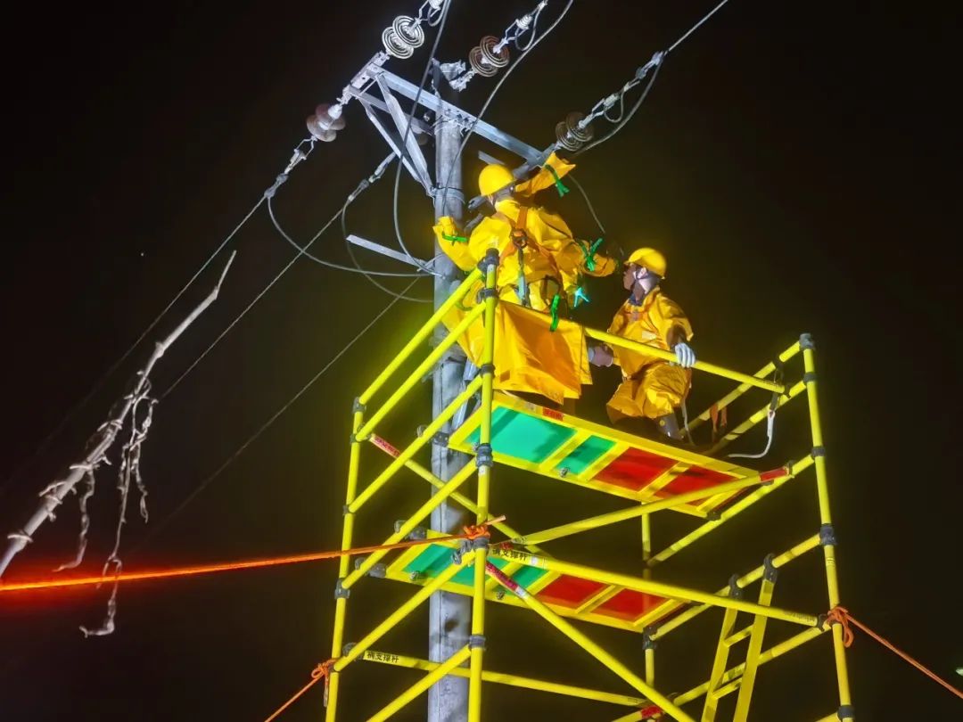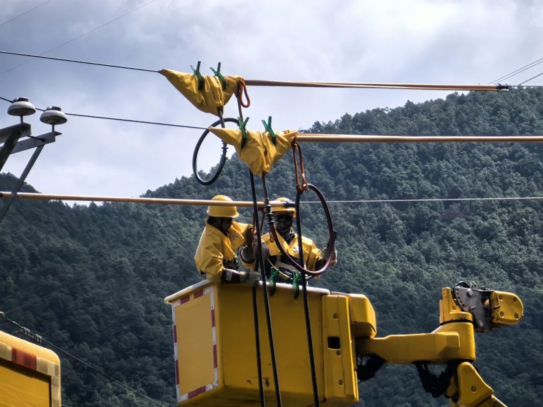 10月1日,南方电网云南昭通绥江供电局工作人员第一时间对用户用电故障点涉及线路设备进行排查,以带电作业方式完成设施消缺。(凌征秀)