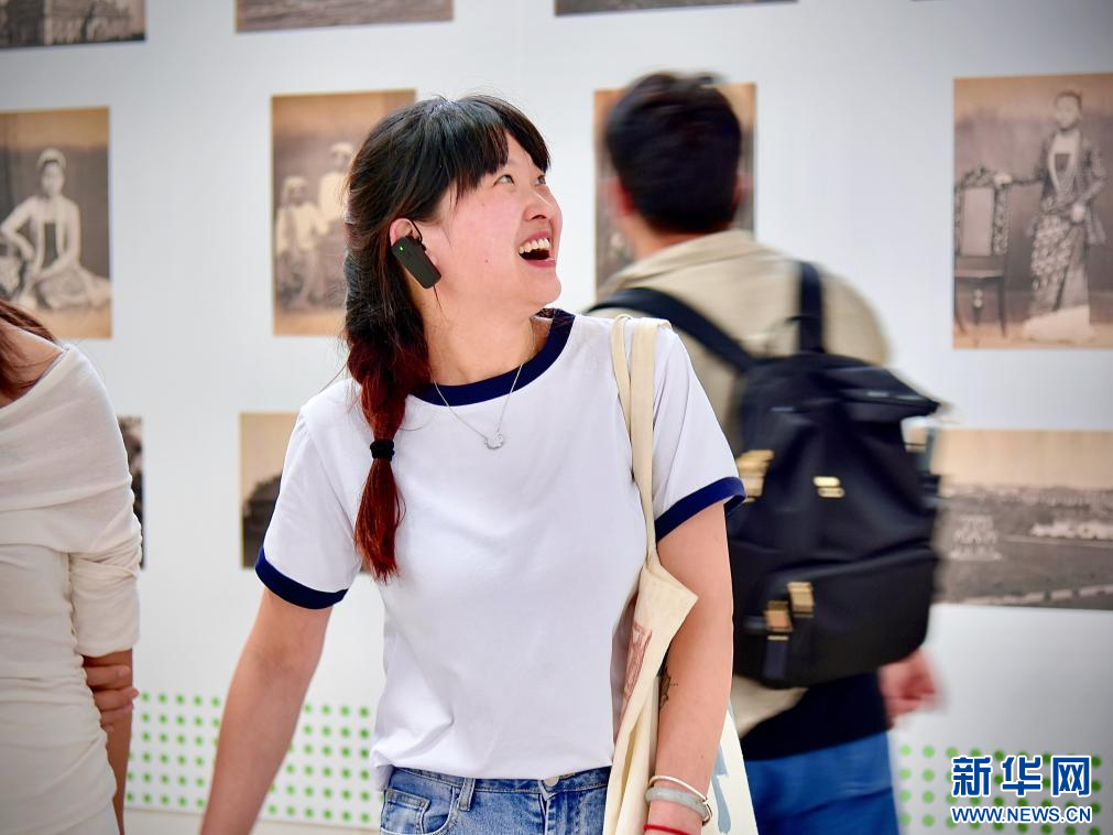 10月2日,游客在西双版纳傣族园观看第十二届“一条大河”西双版纳国际影像展。新华社记者 王贤思 摄
