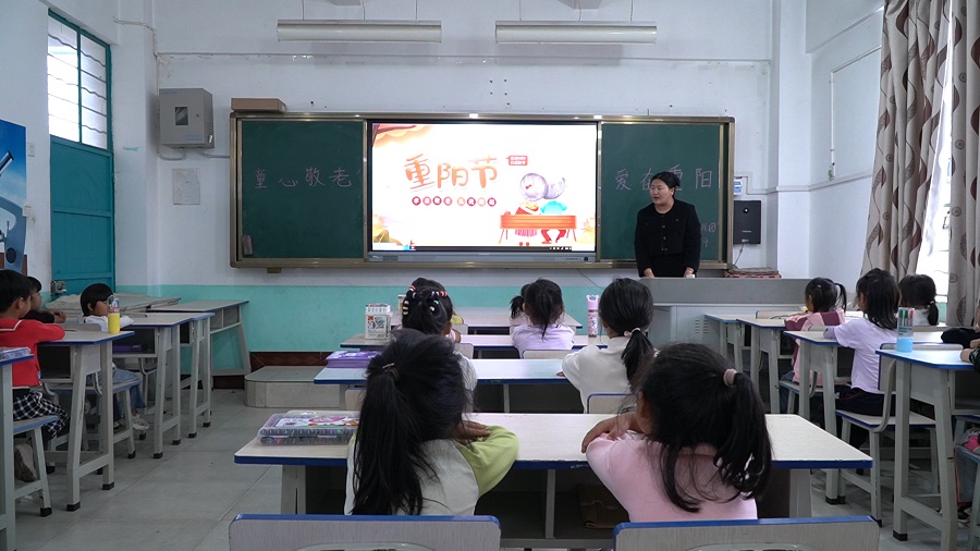 10月11日,农历九月初九重阳节,走进云南省保山市龙陵县龙山镇大坪子村幼儿园,这里正在开展一堂“童心敬老 爱在重阳”主题班会课。老师通过引领学习重阳节知识、播放动画、组织绘画的方式引导小朋友学会感恩,营造敬老、亲老、爱老、助老的社会风尚,树立良好的家庭美德观念,增强少年儿童的社会责任感。