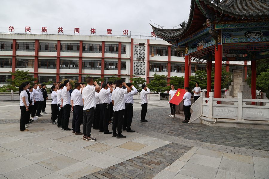 普洱宁洱供电局员工在民族团结誓词碑前重温入党誓词(资料图)。岳建吾 摄