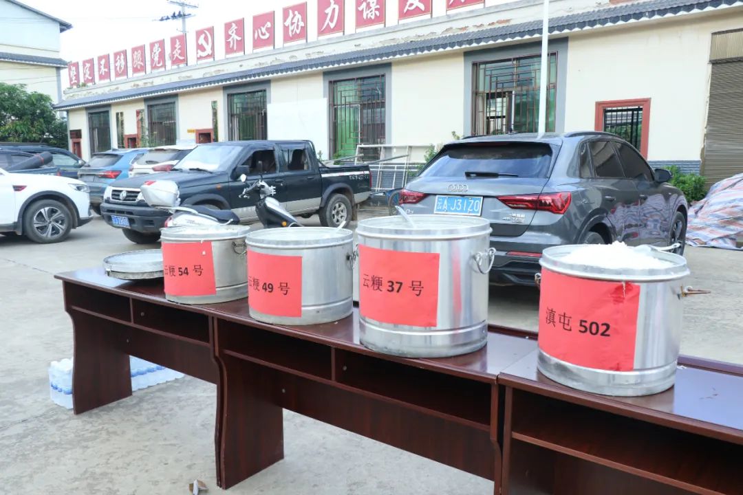 水稻成熟后,社区干部对不同品种进行测产比较,通过对比不同品种的产量、品质确定来年大面积推广的水稻品种。据悉,此次150亩集体经济水稻共种植4个品种,分别是:云粳37号、云粳49号、滇屯502、宝丰1号。其中,云粳37号产量较优、口感细腻、香糯可口。