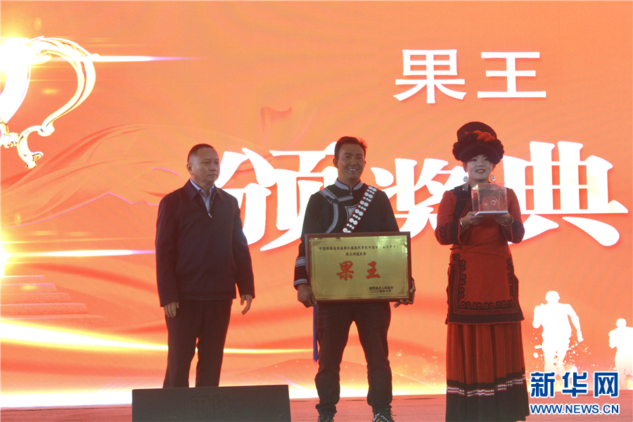 开幕式现场表彰了通过辛勤劳动和科学管理培育出优质苹果“果王”的果农,经外观、口感、糖度等多个方面的综合评定,宁蒗县新营盘乡药草坪村委会余家坪村小组果农李红星培育的苹果获得“果王”称号。