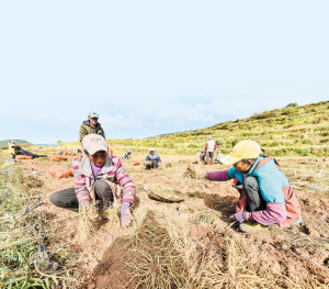 禄劝县马鹿塘乡赊角村的村民正在地里收获当归。记者 王俊星 摄