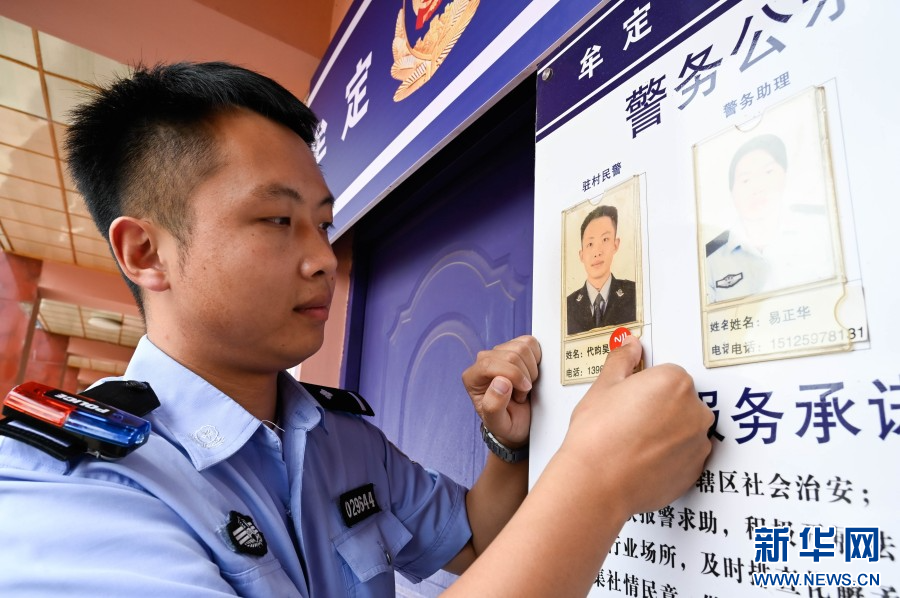 民警代昀昊在照片上粘贴NFC贴片。新华网发(楚雄州公安局供图)