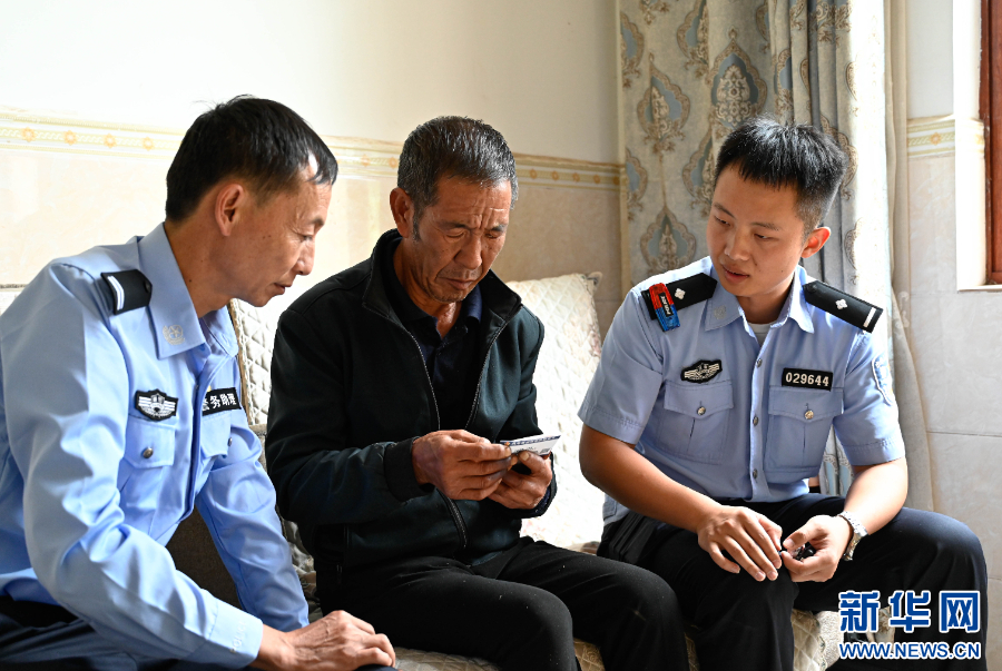 民警教群众使用带有NFC贴片的警民联系卡。新华网发(楚雄州公安局供图)