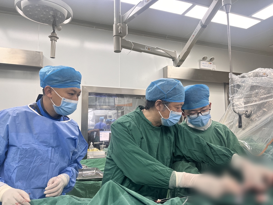 高伟(中)在丽江市人民医院为患儿手术(10月24日摄)。丽江市人民医院 供图