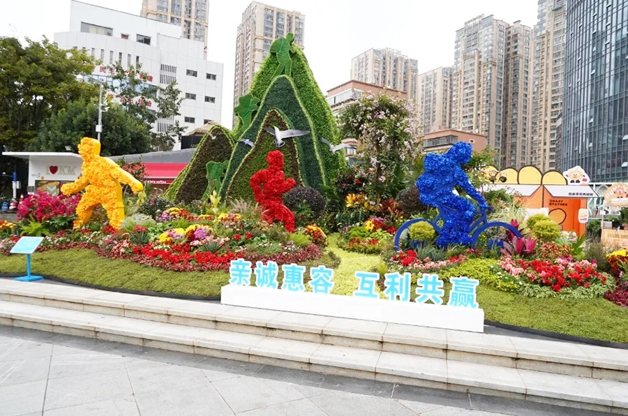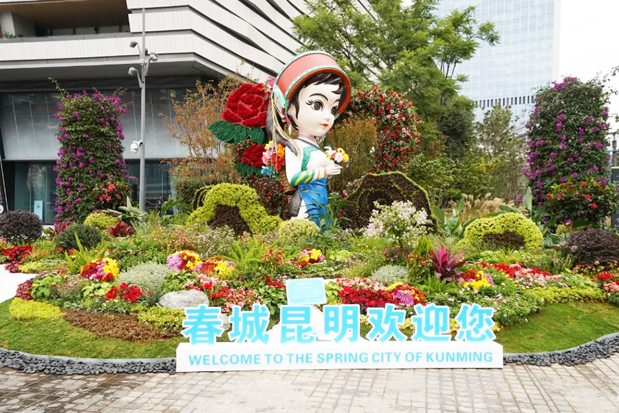 近期,盘龙区以北京路、拓东路、人民东路等重要交通道路为重点,打造了“健康中国”“民族少女”“茶梅飘香”“向往阳光”等八组不同主题的立体花坛、花墙。