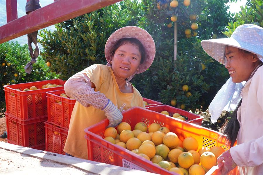 10年前,龙陵县人民政府与龙陵恒冠泰达农业发展有限公司达成合作意向,云冠橙项目正式落户勐糯镇田坡村。为了保证群众的种植利益,当地探索推行了“党总支+龙头企业+基地+农户”联结发展模式,构建起“一租、二包、三分红”发展体系,走出了一条“农村土地三权分离、农民变工人、离土不离乡、就业有出路、收入有来处”的增收致富新路子。