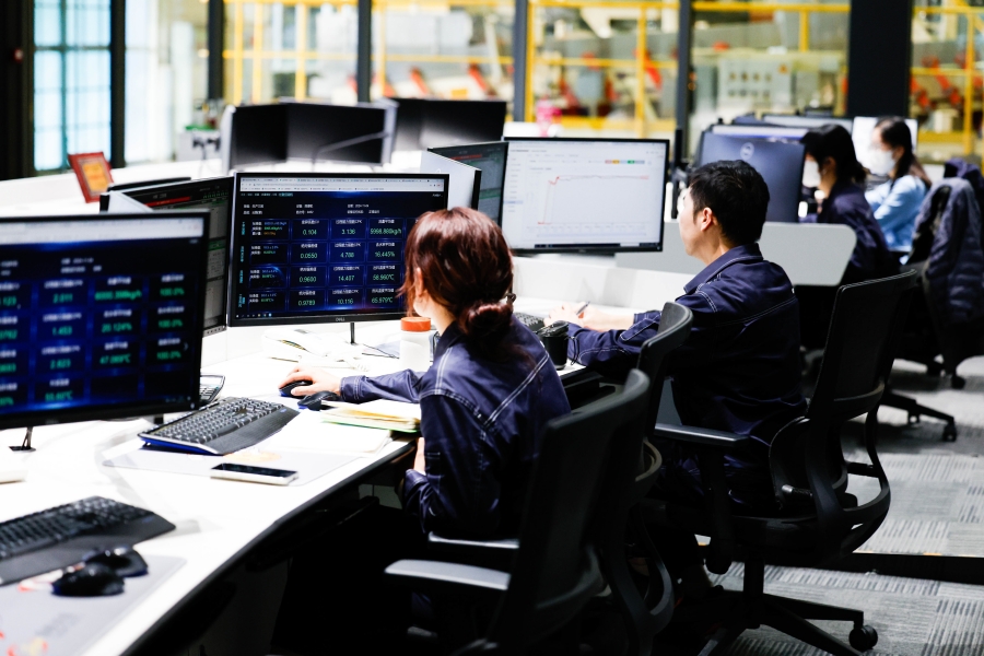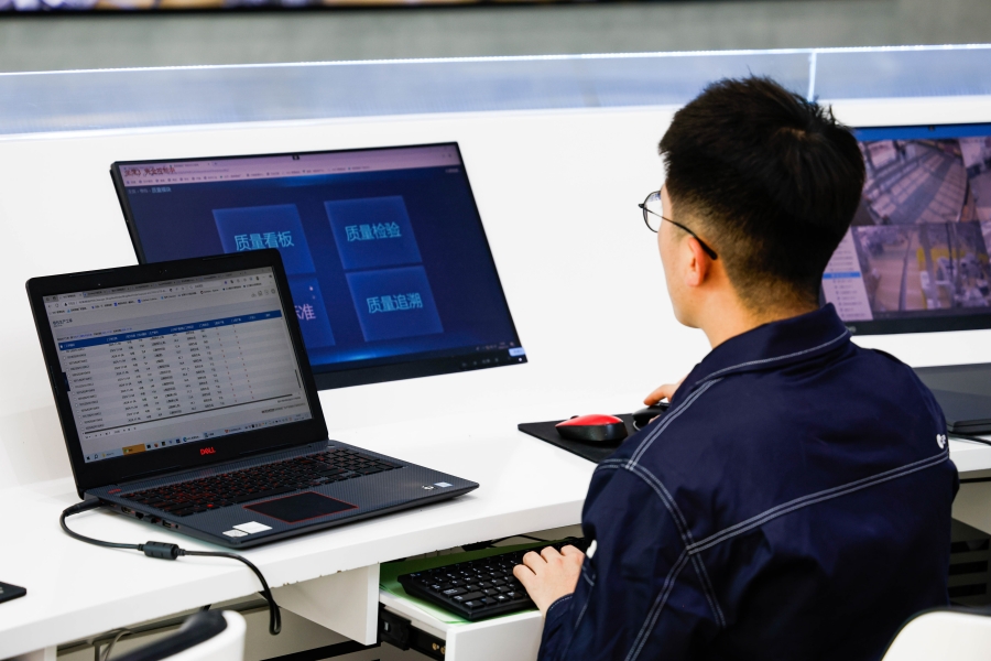 工作人员正在操作电脑后台查看实时生产数据(11月4日摄)。刘云 供图