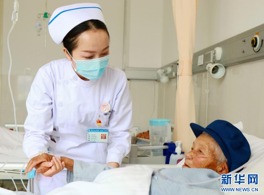 丽江市人民医院护理人员在病房为老年患者进行心理疏导(资料图)。新华网发(丽江市人民医院 供图)