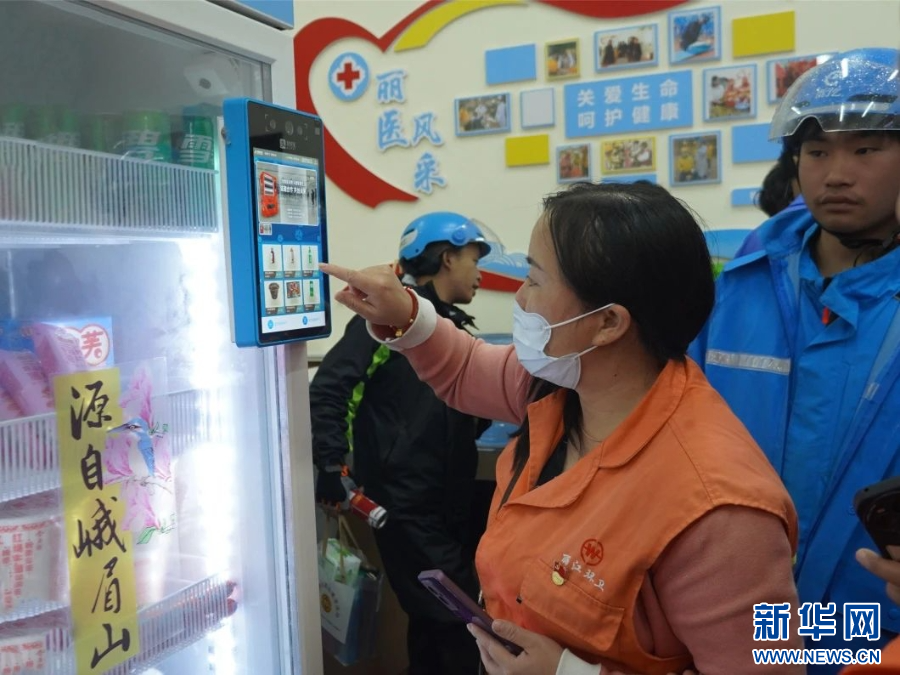 户外劳动者在驿站自助机购买矿泉水(资料图)。新华网发(丽江市人民医院 供图)